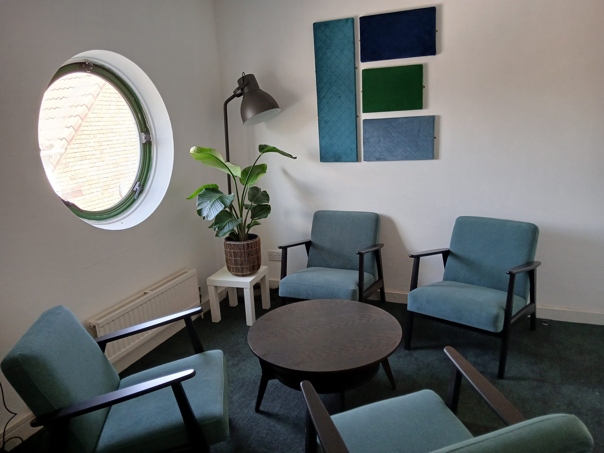 The Chaplin Room is a small and private space suitable for a range of small group sessions or one to one activities. For example; counselling, holistic therapies, massage, physio, tutoring and small meetings.