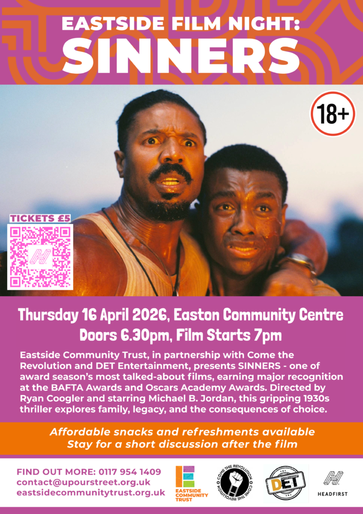 Eastside Community Trust, in partnership with Come the Revolution and DET Entertainment, presents SINNERS – an award-season standout that has captured major attention at the BAFTA Awards and the Academy Awards.